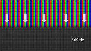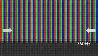 传统液晶驱动是从左到右单向进行,,,,在画面更新速度愈来越愈快的情况下,,,位于驱动线路末端的右下角区域,,画素的闸极来不及在短时间内获得足够电压,,无法显示出正确的颜色资讯。。。。